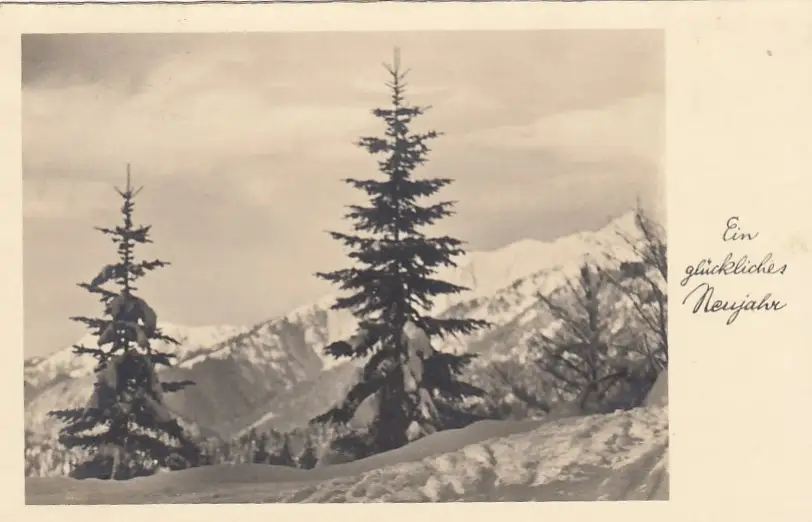 Neujahr-Grüße mit Winterwald in den Bergen gl1937 E7440