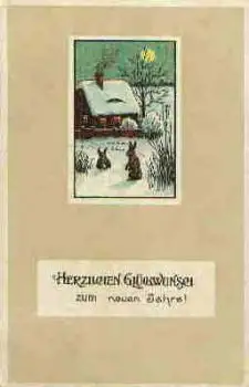 Neujahr Hasen Glückwunschkarte o 31.12.1914