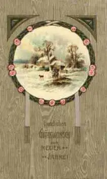 Neujahr Jugendstil Prägekarte o 10.1.1908