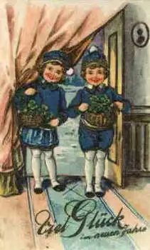 Neujahr Kinder mit Blumenkörben Goldschnittkarte o 31.12.1928