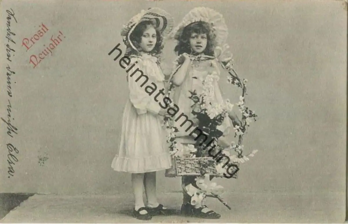 Neujahr - Kinder mit Blumenkorb gel. 1907