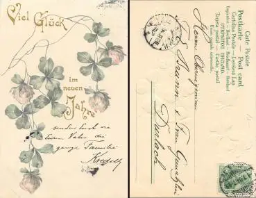 Neujahr Goldschnitt Farbprägekarte, o 1.1.04