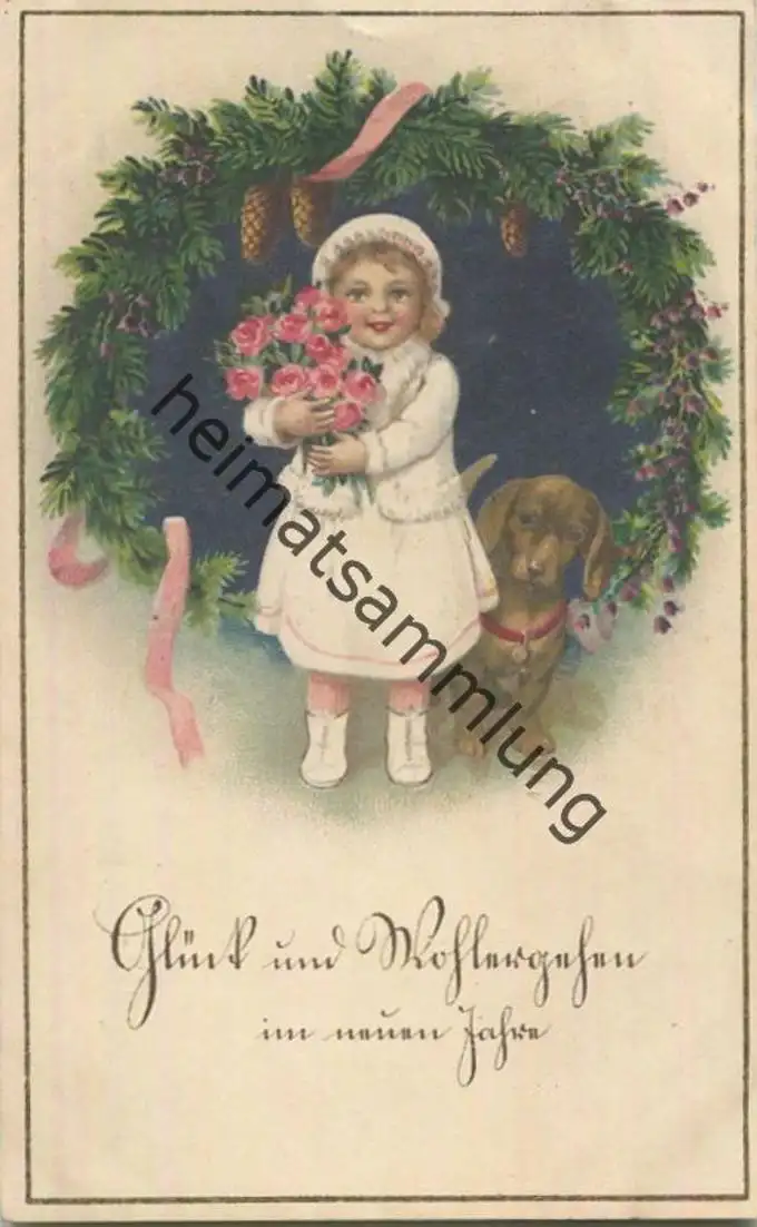 Neujahr - Mädchen - Dackel - Blumen gel.