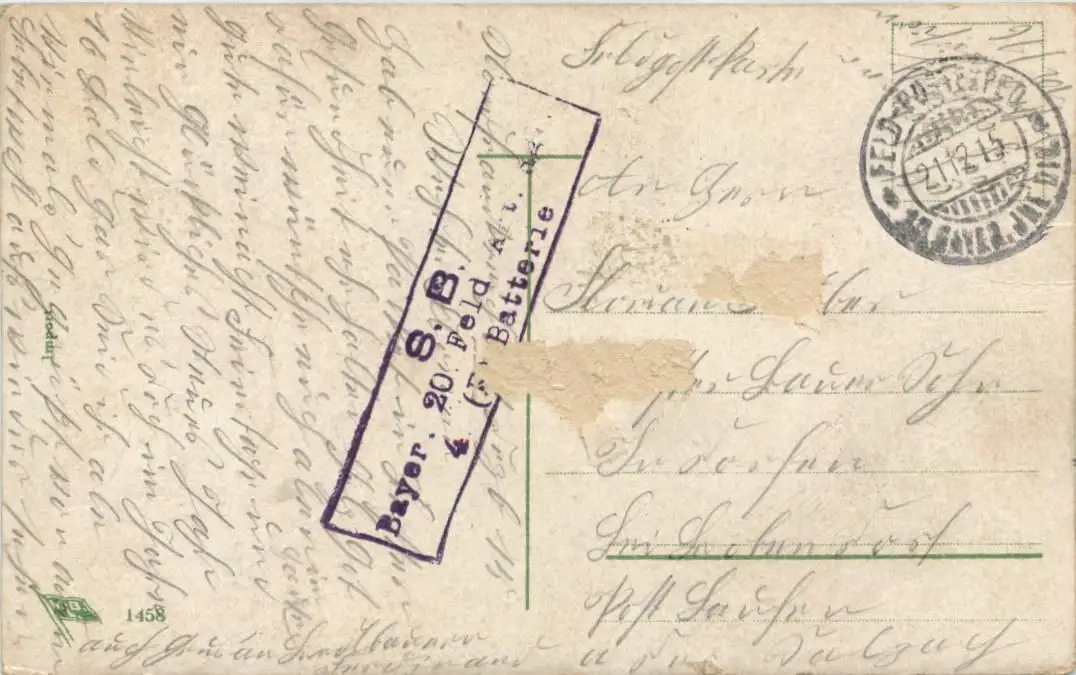 Neujahr Weltkrieg - Feldpost Bayr. 20. Feld Art. Regiment -624136
