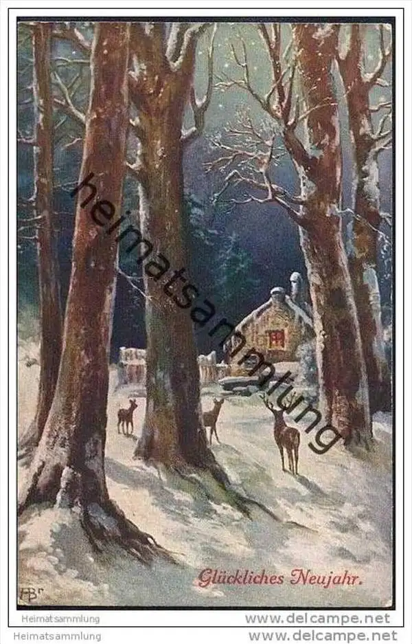 Neujahr - Winterwald - Hirsch (G16982) gel. 1913