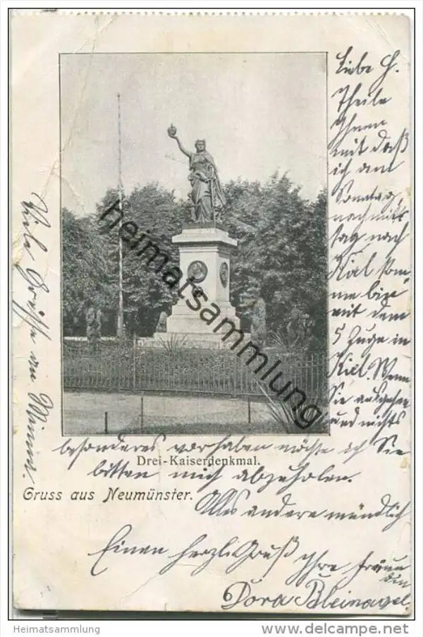 Neumünster - Drei-Kaiserdenkmal - Gebrauchsspuren - Knicke (G32161) gel. 1900