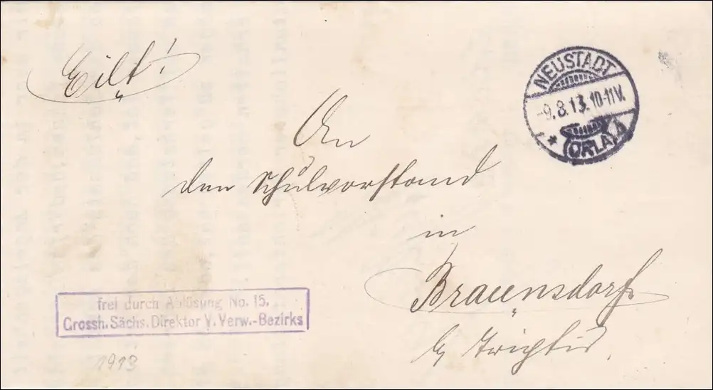 Neustadt/Orla nach Braunhof 1913