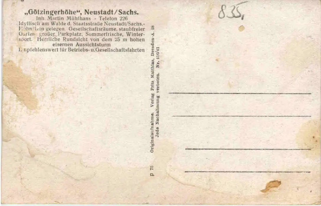 Der Zustand der Ansichtskarte war wie beschrieben und der Preis akzeptabel. Der Versand erfolgte leider erst nach knapp einer Woche nach Aufforderung und Androhung von Konsequenzen. Deshalb werde ich hier nicht mehr kaufen