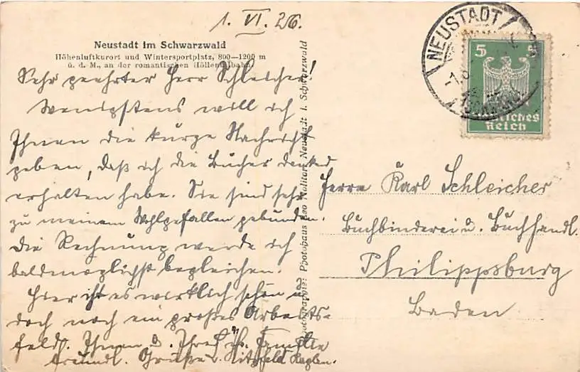 Neustadt im Schwarzwald Panorama gl1926 145.106