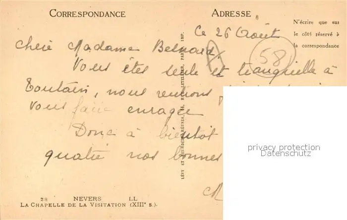 Nevers_Nievre Chapelle de la Visitation XIIIe siècle Nevers Nievre postalisch nicht gelaufen 1921-1965 Erhaltung siehe scans [FriedD77] Frierer