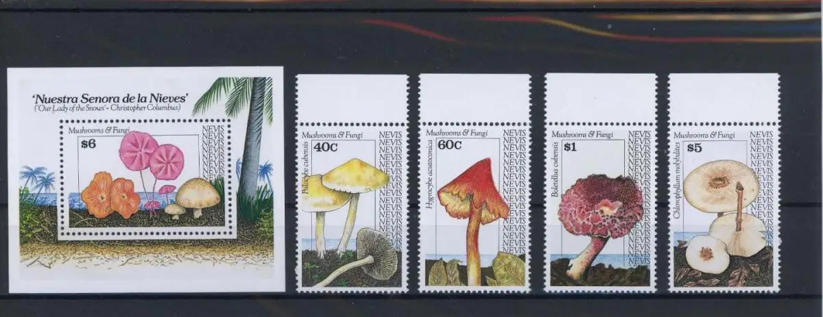 Nevis 638-639, 41, 44, Block 39 postfrisch Pilze #1G407
