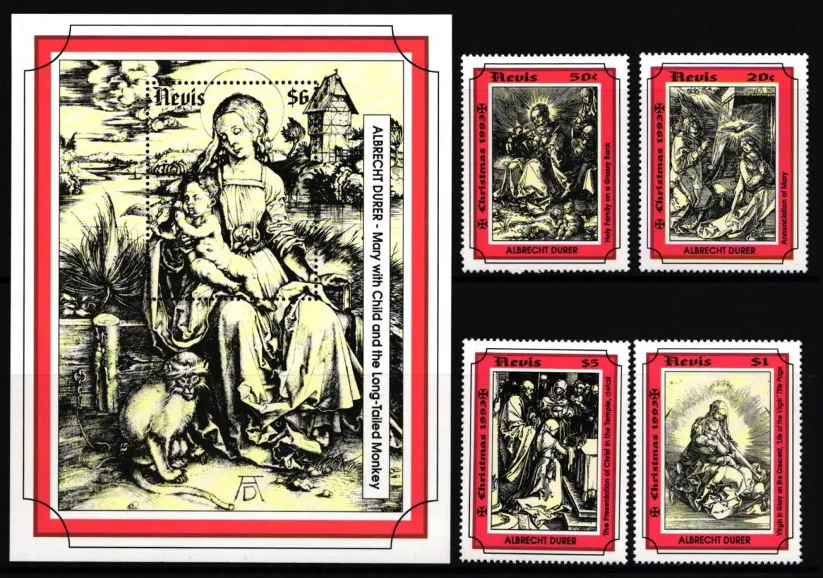 Nevis 779, 781, 783, 786 und Block 69 postfrisch Albrecht Dürer #IH891