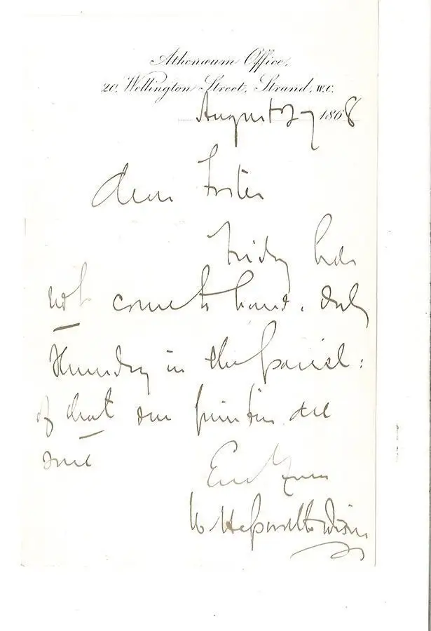 Bemerkungen: Sabin 20373 - Erstausgabe des Reiseberichtes von William Hepworth Dixon (1821-1879), einem aus Manchester stammenden Reisenden, eine amerikanische Ausgabe sowie eine deutsche Übersetzung erschienen noch im selben Jahr. Das Werk erfreute sich zeitgenössisch großer Beliebtheit, bis 1869 erschienen allein 8 Londoner Auflagen. Mit beiliegendem Brief des Verfassers auf Briefpapier mit Adressvordruck des Büros der Literaturzeitschrift "The Athenaeum" in London, datiert "August 27 1868". Dixon war seit 1853 Herausgeber der Zeitschrift. Mit einigen Kapiteln über die Mormonen in Salt Lake City. First edition. Account of the journey to America by the british journalist William Hepworth Dixon (1821-1879). With a handwritten letter on letter-paper with adress form of the "Athenaeum Office" in London. Dixon became editor of the "Athenaeum" magazine in 1853. Large chapters (f. e. "The Mormon Theatre", "The temple", "Settlement in Utha" "Mormon light") on Utah and Mormonism, with emphasis on Mormon marriage customs and polygamy.