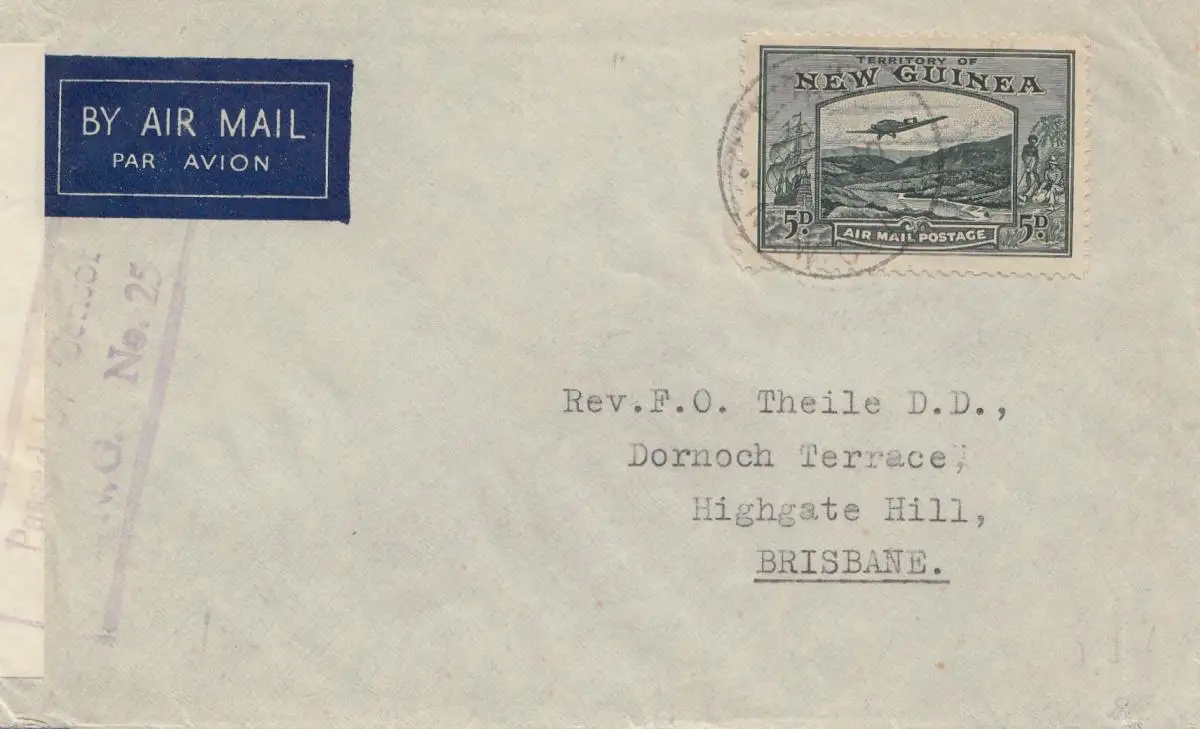 New Guinea: 1940: Air Mail to Brisbane, censor