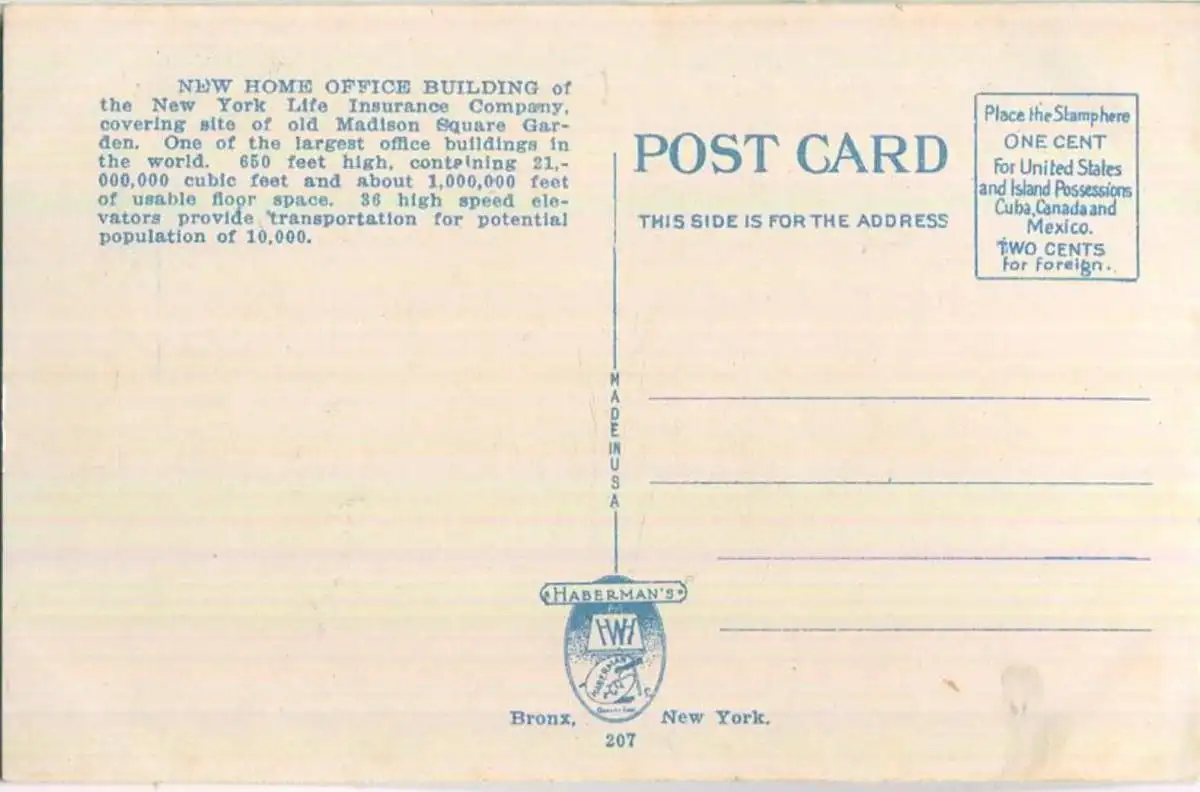 New York City - New Home Office Building - Edition Haberman's Bronx New York (G3550) *