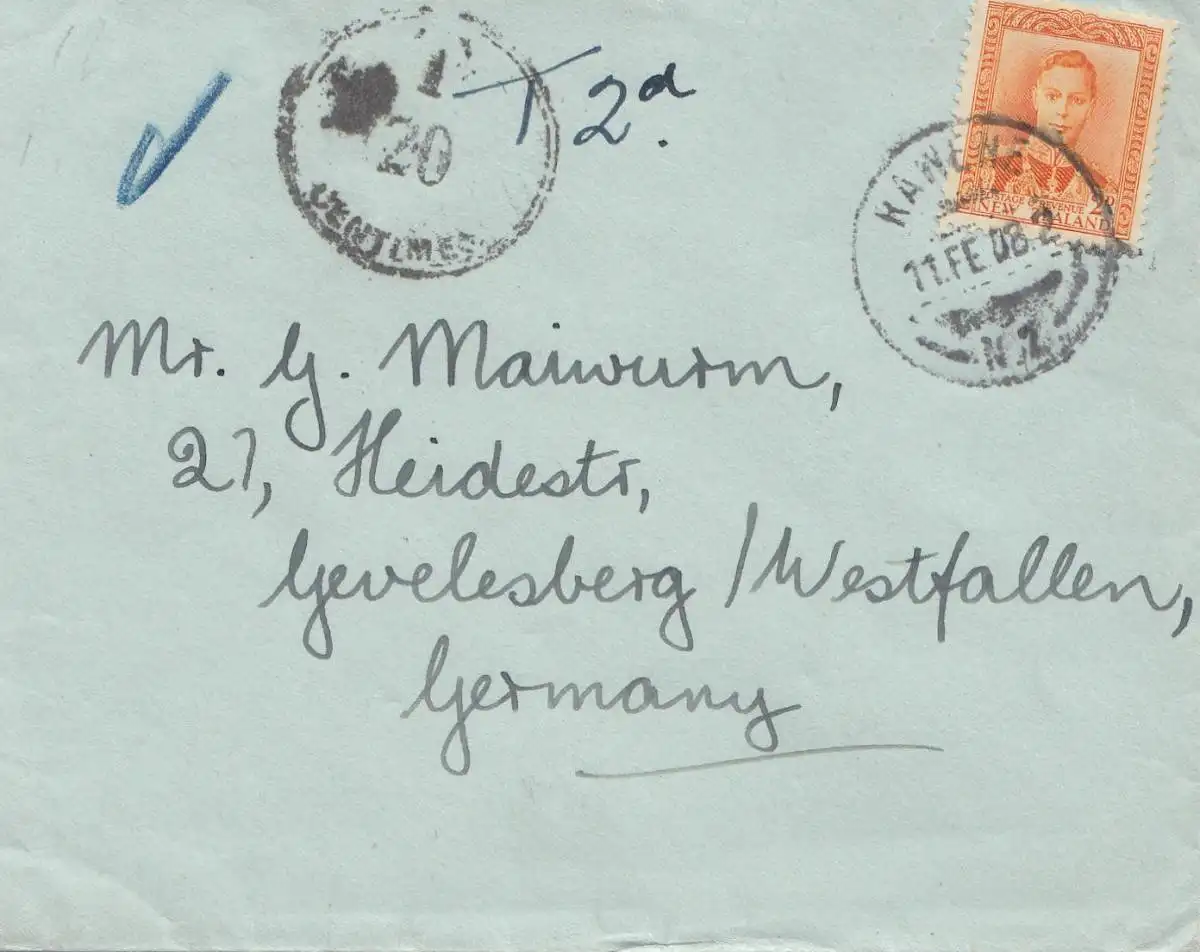 New Zealand: 1908: Rawene to Germany - Taxe