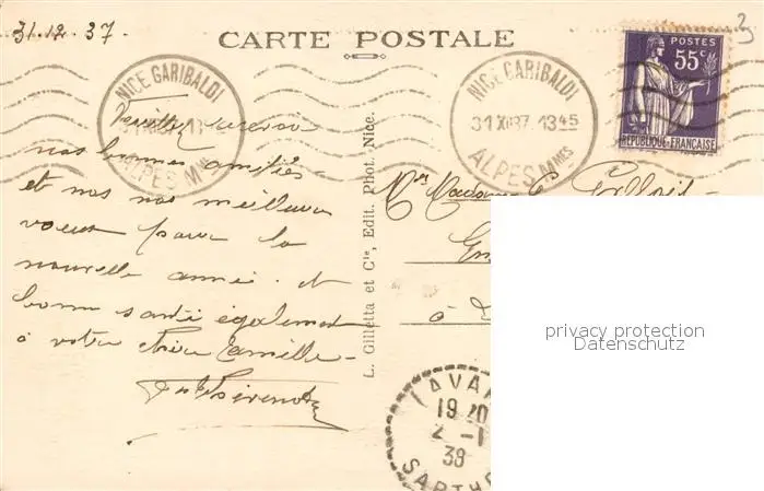 Nice_Alpes_Maritimes Promenade des Anglais Côte d'Azur Nice_Alpes_Maritimes postalisch gelaufen 1937 Erhaltung siehe scans [FriedD77] Frierer