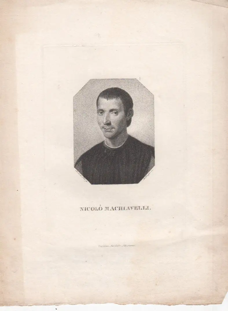 Bemerkungen: Friedrich Wilhelm Bollinger (1777-1825), war ein deutscher Kupferstecher und Professor in Berlin. Niccolò di Bernardo dei Machiavelli (1469-1527), florentinischer Philosoph, Politiker, Diplomat, Chronist, Schriftsteller und Dichter. Vor allem aufgrund seines Werkes Il Principe (Der Fürst) gilt er als einer der bedeutendsten Staatsphilosophen der Neuzeit.