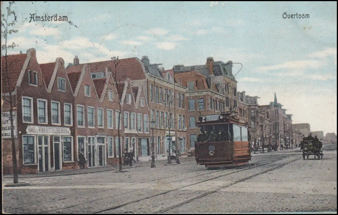 Niederlande AK Amsterdam Overtoom mit Straßenbahn und Kutsche, 5.5.1911