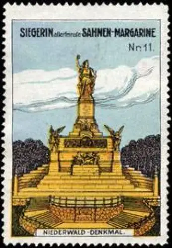 Niederwald - Denkmal, Siegerin allerfeinste Sahnen - Margarine, Nr. 11, Cleve, Größe/Zustand: 6x4 , guter Zustand, Original alte Reklamemarke die seinerzeit für die Werbung benutzt wurde