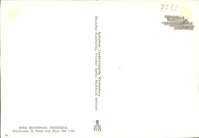 Niederzell Reichenau Stiftskirche St. Peter und Paul Reichenau postalisch nicht gelaufen 1921-1965 gute Erhaltung Alte Ansichtskarte Postkarte hz Lmann