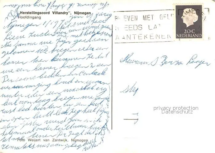 Nijmegen Herstellingsoord Villandry Hoofdingang Nijmegen postalisch gelaufen 1970 Erhaltung siehe scans [FriedD77] Frierer