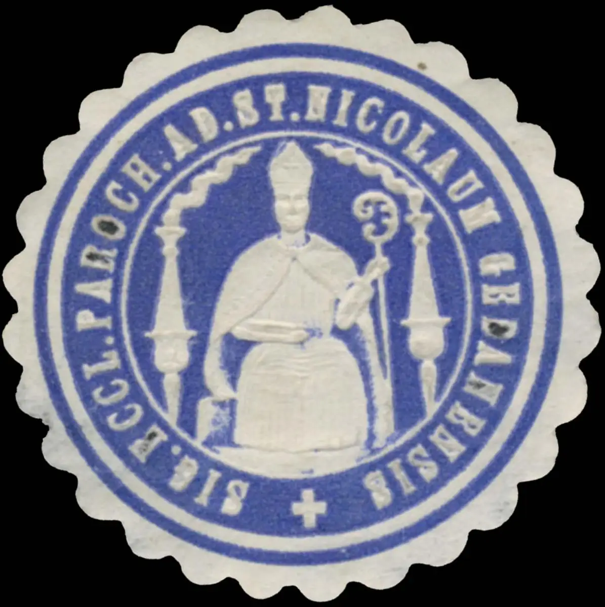 st. nicolaun gedanensis, Kirche, Religion, Größe/Zustand: 4 , beschädigt, Original Verschluss-Siegelmarke aus Papier welche früher von Behörden, Firmen etc. zum Versiegeln der Briefe benutzt wurden