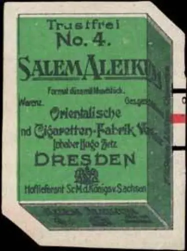 Salem Aleikum, Größe/Zustand: 5x4 , guter Zustand, Original alte Reklamemarke die seinerzeit für die Werbung benutzt wurde