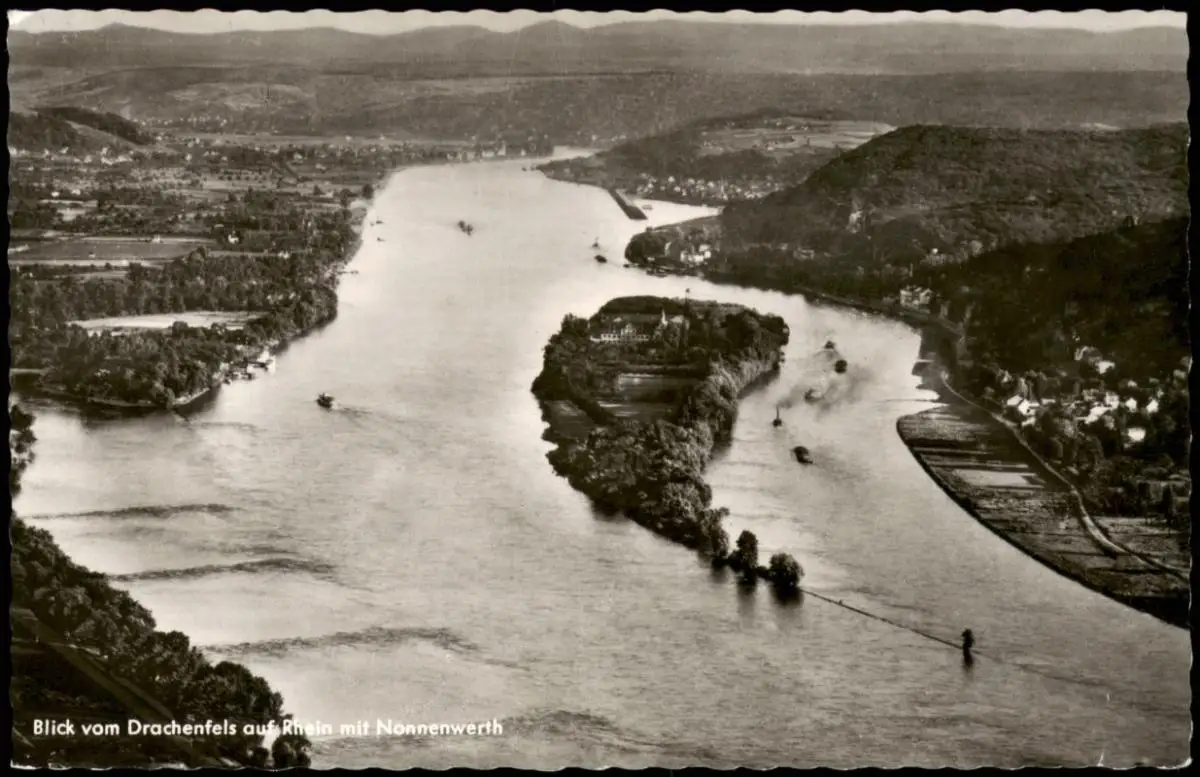 Nonnenwerth-Remagen Blick vom Drachenfels auf Rhein mit Nonnenwerth 1964