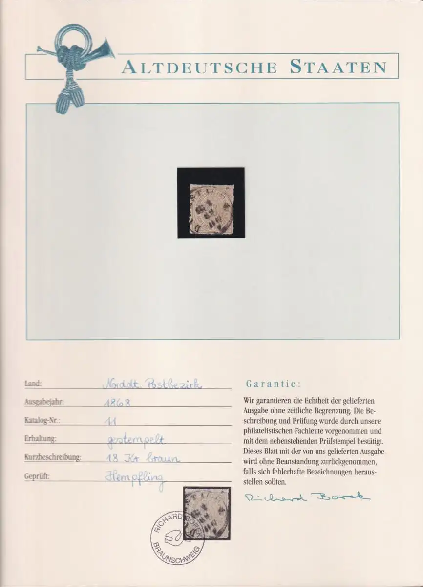 Norddeutscher Bund 11 gestempelt Borek Garantie #OJ396