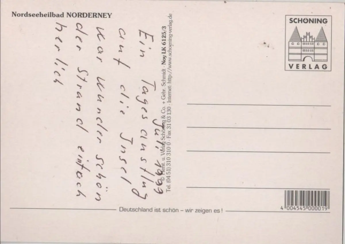 Postleitzahl:26548 (neu) / W 2982 (alt)