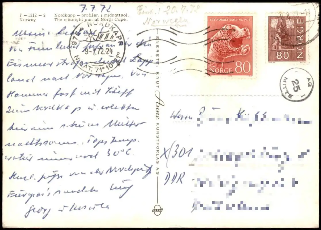 Nordkap Davvinjárgga Nordkap Nordkapp profilen i midnattsol, North Cape 1972