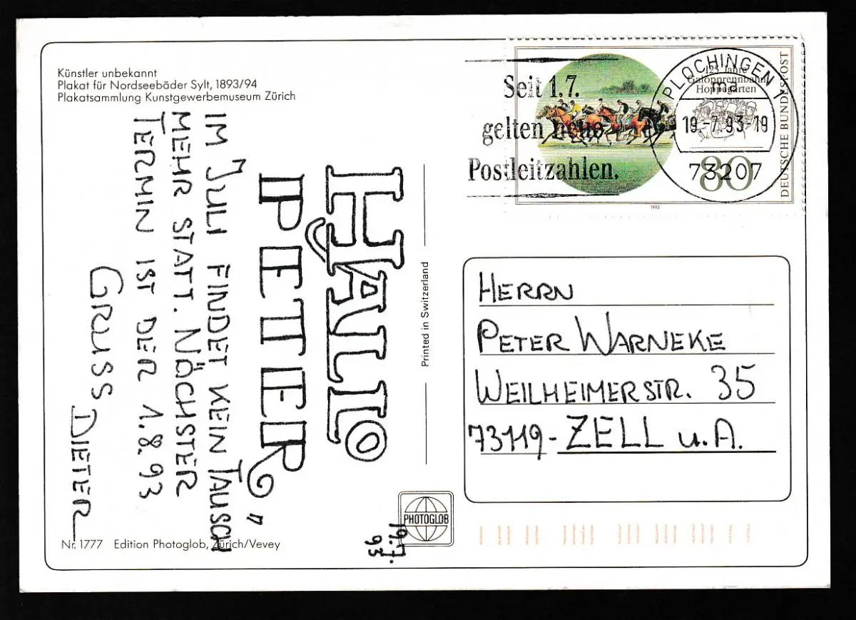 zwei sehr schöne Bahnpostbelege, einmal HUSUM-GARDING von 1916 - ohne Zugnummer aufgrund der Furcht vor feindlicher Spionage - und ERFURT-EISENACH von 1965. Vielen Dank, bin mit der Lieferung sehr zufrieden.