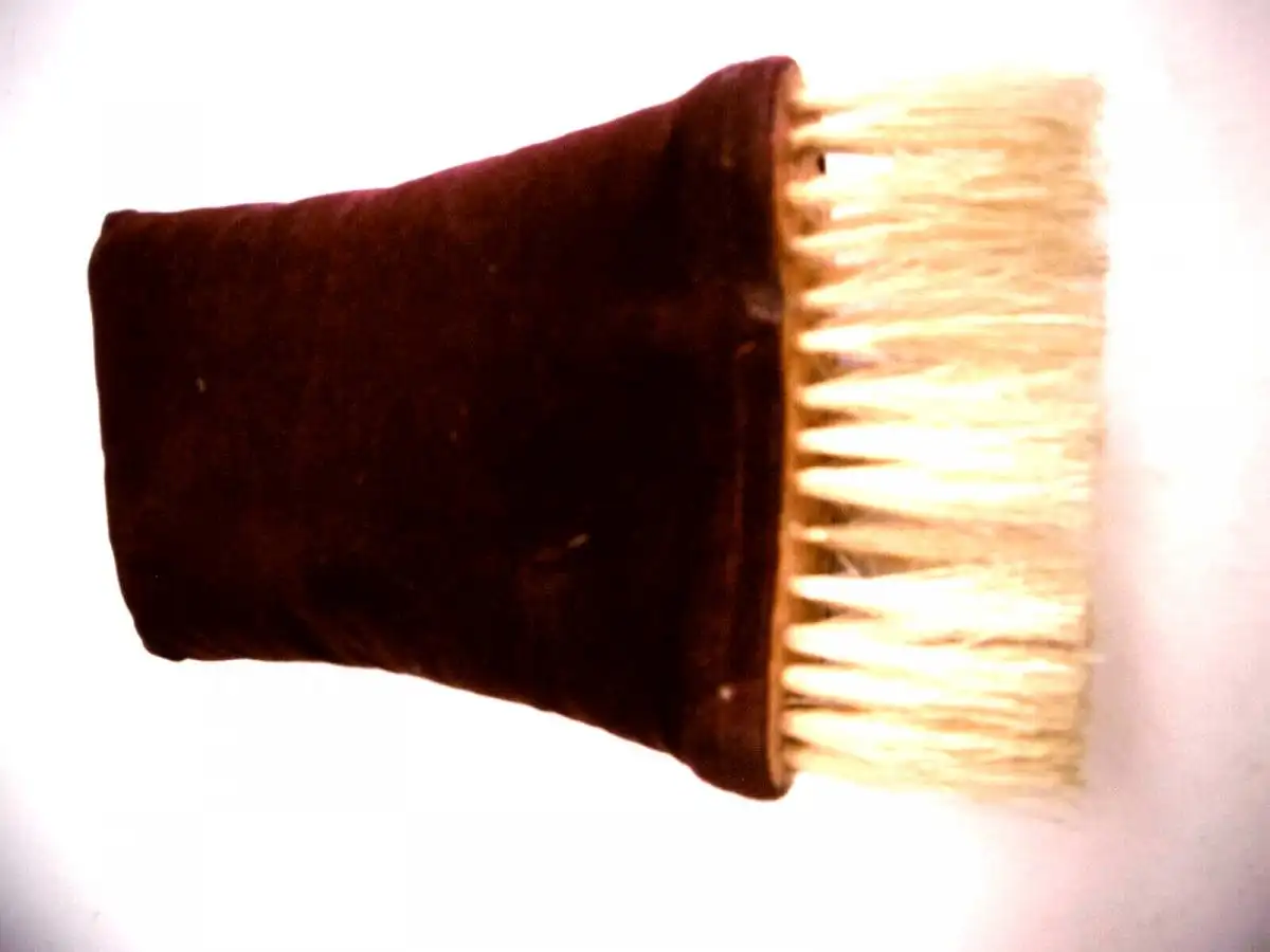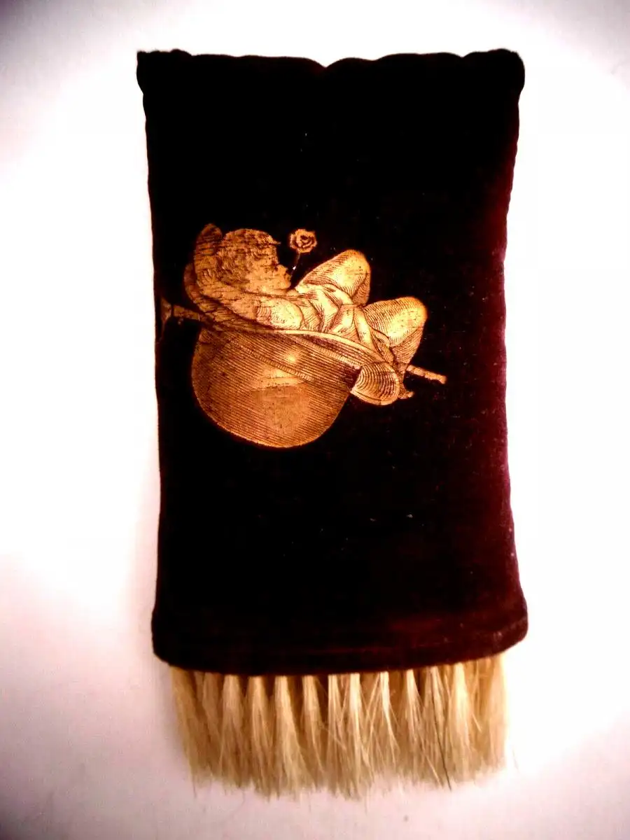 Die Bürste ist aus dunkelrotem Samt gefertigt und in dieser Art heutzutage nicht mehr zu bekommen. Ordentlicher Zustand mit normalen Alters- und Gebrauchsspuren,