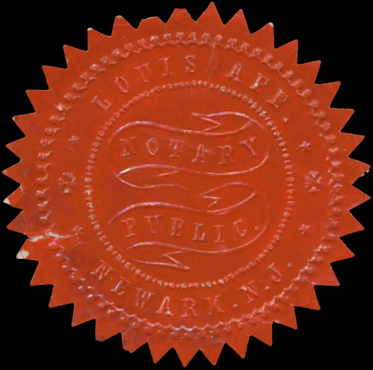 Newark, Notar, Größe/Zustand: 5 , beschädigt, Original Verschluss-Siegelmarke aus Papier welche früher von Behörden, Firmen etc. zum Versiegeln der Briefe benutzt wurden