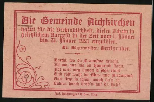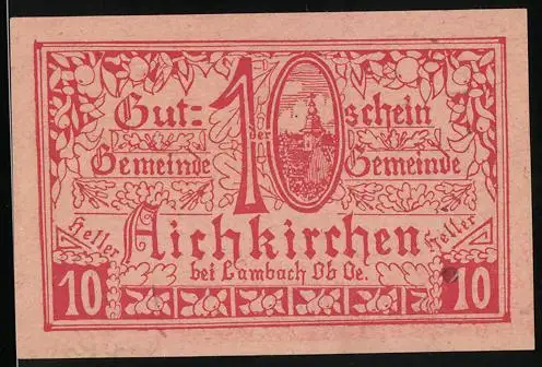 Notgeld Aichkirchen bei Lambach 1921, 10 Heller, Kirche