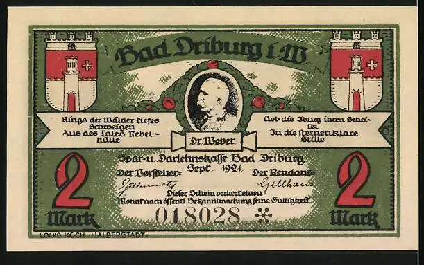 Notgeld Bad Driburg i. W. 1921, 2 Mark, Ortspartie