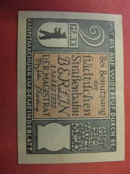 Notgeld Berlin, 2 Mark, Straßenbahn