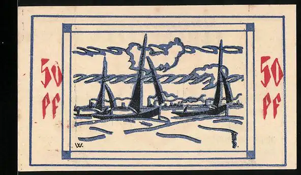 Notgeld Bullenkuhlen, 50 Pfennig, Segelboote auf dem Wasser