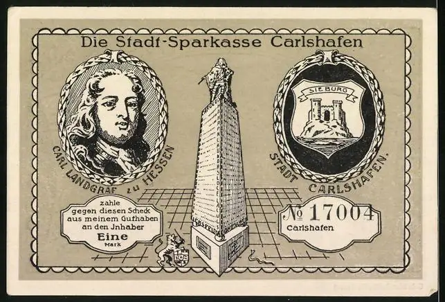 Notgeld Carlshafen, 1 Mark, Gradierwerke, Carl Landgraf zu Hessen