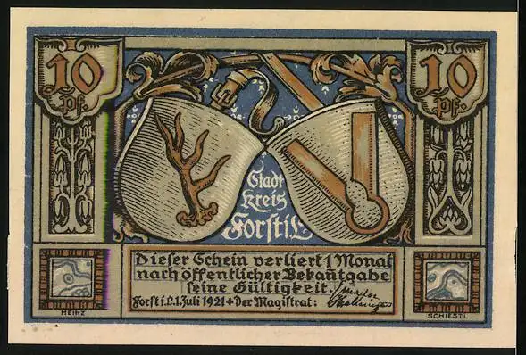 Notgeld Forst i. L. 1921, 10 Pfennig, Die Webeschule