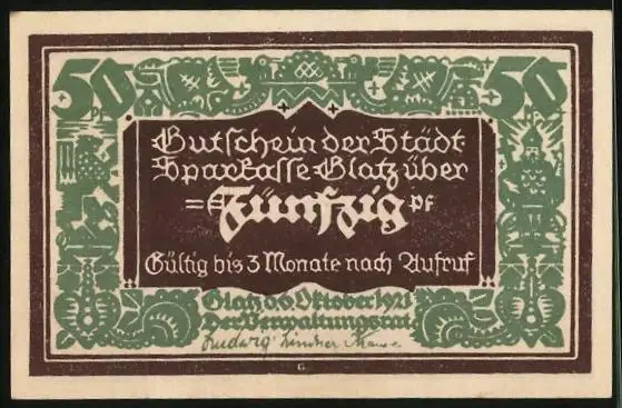 Notgeld Glatz 1921, 50 Pfennig, Frau mit Tochter