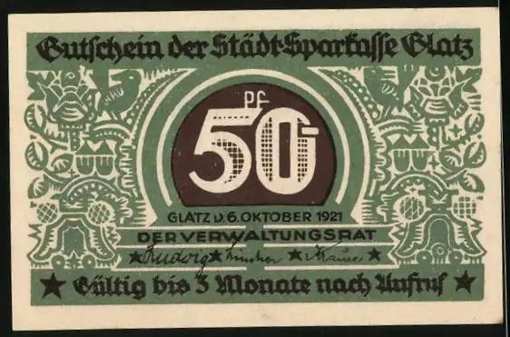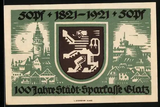 Notgeld Glatz 1921, 50 Pfennig, Löwenwappen