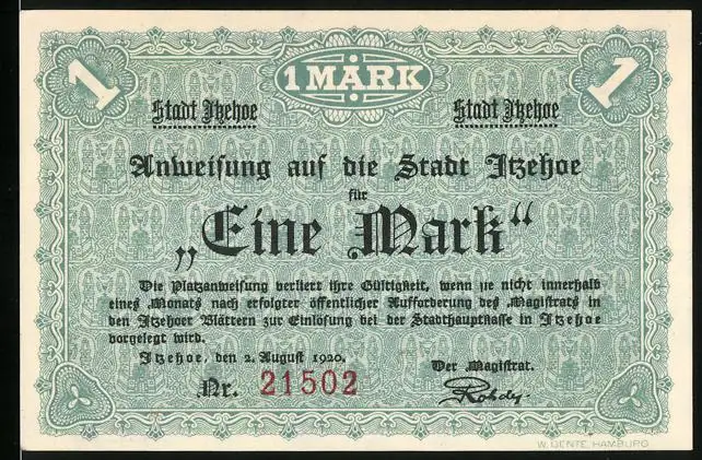 Notgeld Itzehoe 1920, 1 Mark, Jäger in ihrem Camp