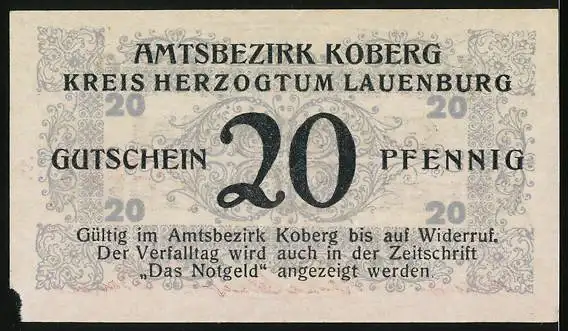 Notgeld Koberg 1921, 20 Pfennig, Verzierungen
