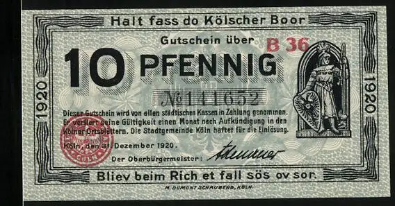 Notgeld Köln 1920, 10 Pfennig, Partie am Rathaus