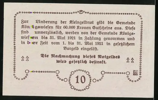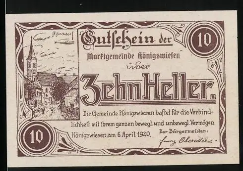 Notgeld Königswiesen 1920, 10 Heller, Wegpartie an einer Kirche