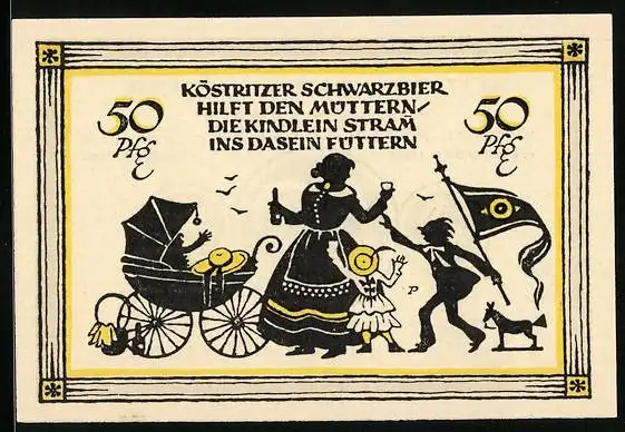 Notgeld Köstritz 1921, 50 Pfennig, Mutter gibt den Kindern Schwarzbier