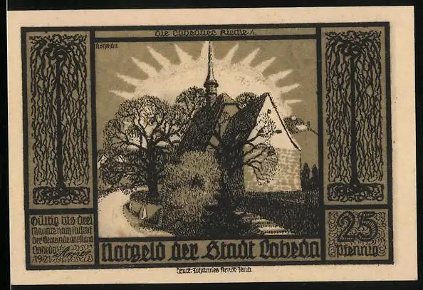 Notgeld Lobeda 1921, 25 Pfennig, Kirche, Ruine