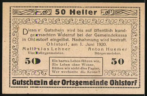 Notgeld Ohlstorf 1920, 50 Heller, Kirche